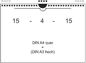 Abhängig vom Kalenderformat müssen die ausschaltbaren Stanzstempel des Bindegerätes deaktiviert werden, um Platz für das separat zu stanzende Daumenloch zu lassen. Für ein Daumenloch mit Durchmesser 20 mm müssen immer 4 Stanzlöcher in der Mitte des Kalenders ausgelassen werden (Siehe untenstehende Skizzen).